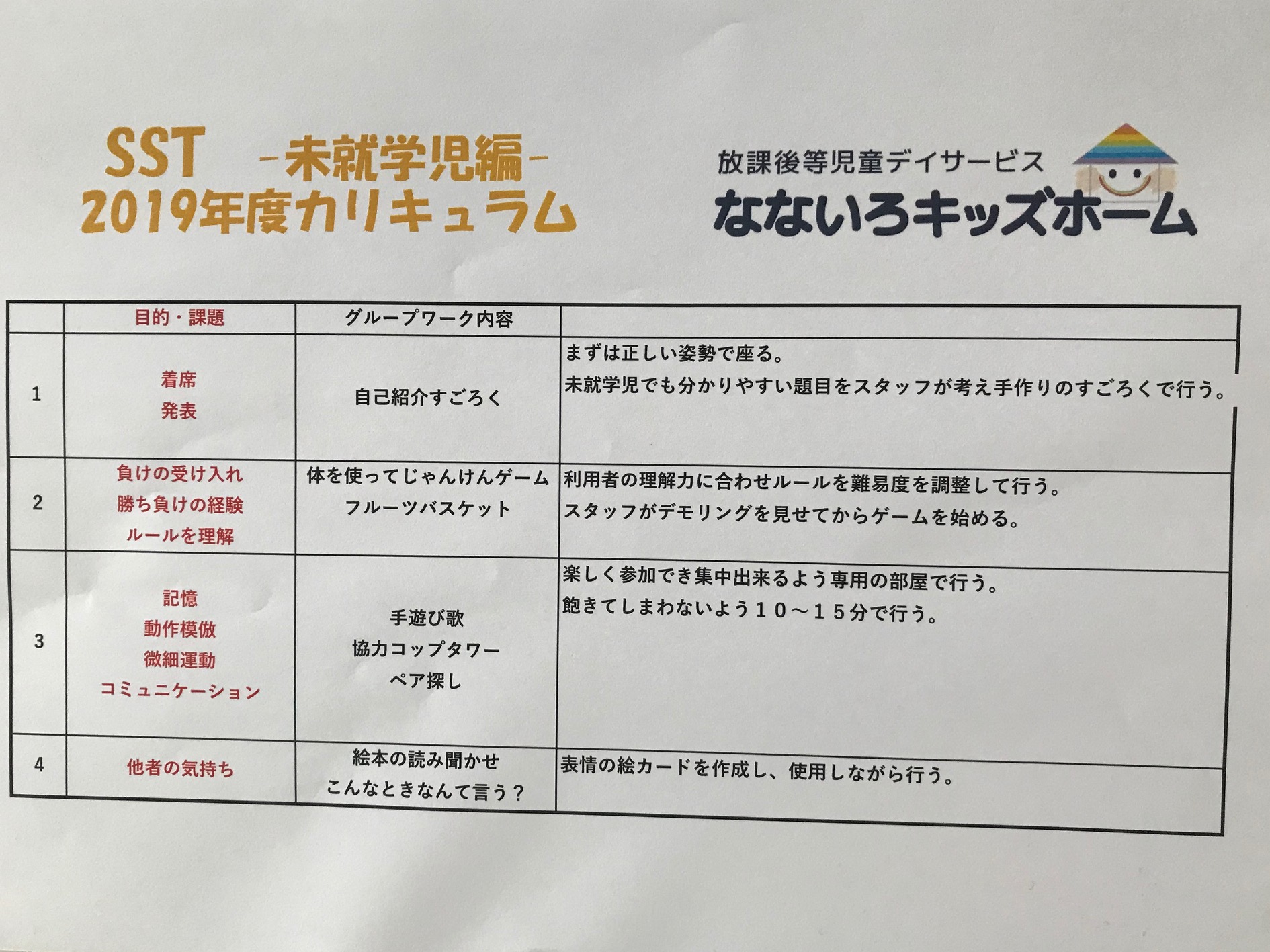 こんにちは😉 なないろキッズホームでは 月曜日〜金曜日、1日15分〜20分程 SST(ソーシャルスキルトレーニング)を 行っています。 、 、 ご質問等ございましたら なないろキッズホームまで お問い合わ […]