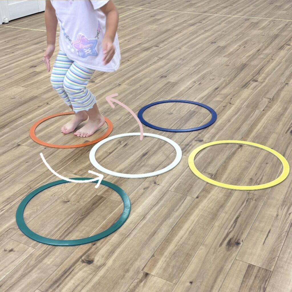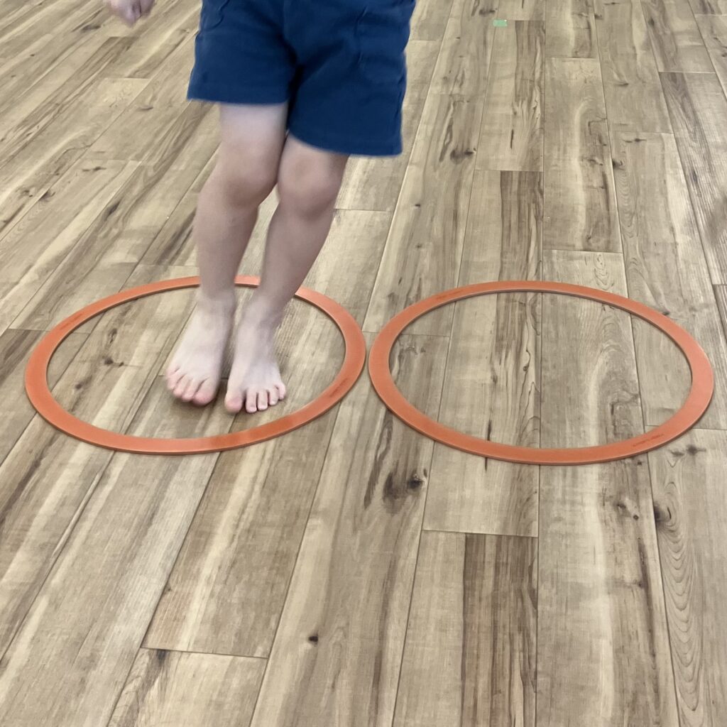 上の写真のように輪っかを横向きや縦向きで置き、両足を揃えて跳んでいますよ🙌🏻