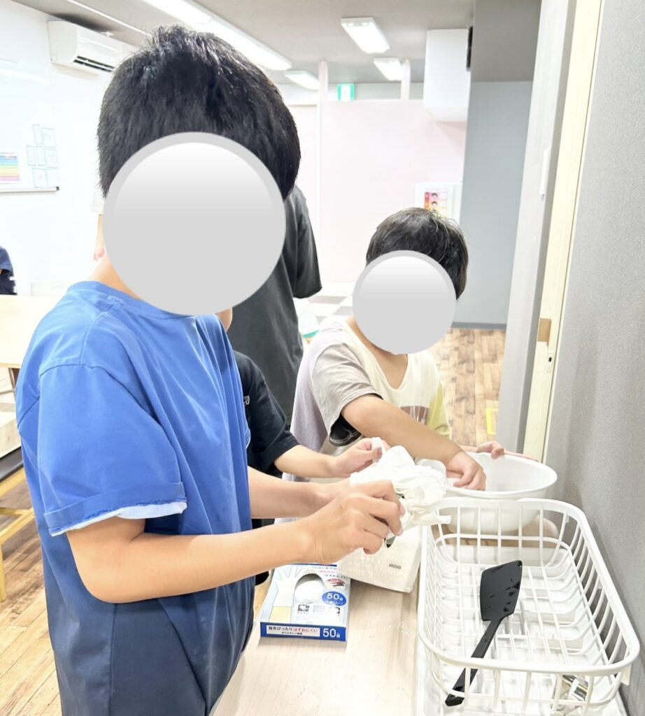洗ったお皿やボウルを拭いたり、机や床を拭きました!