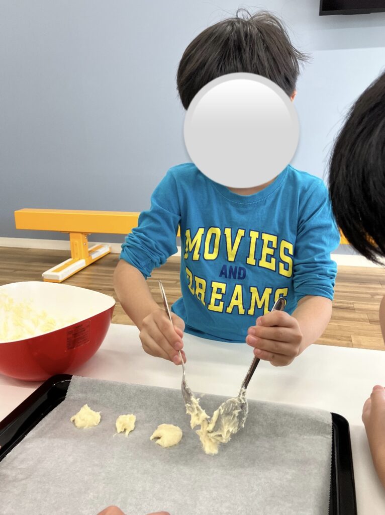 ラングドシャ作りで必要な材料を買いに行くところからはじめ、みんなでクッキングをはじめましたよ🚶‍♀️💨