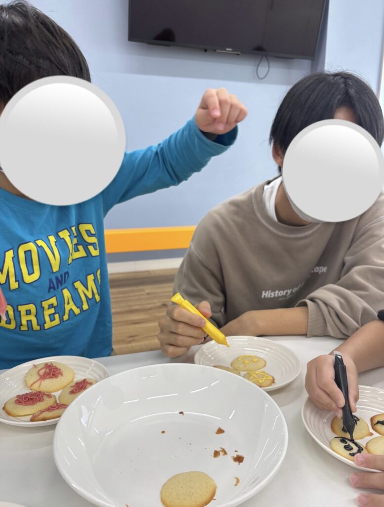 チョコペンでニコちゃんや星、文字などを描いて楽しんだ子どもたちでした🍪🌟❤️