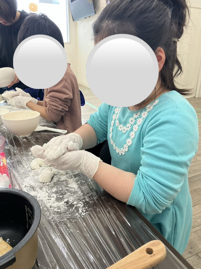 出来上がったお餅は、きな粉をかけたり砂糖醤油につけたり、海苔を巻いたりして美味しくいただきました😋