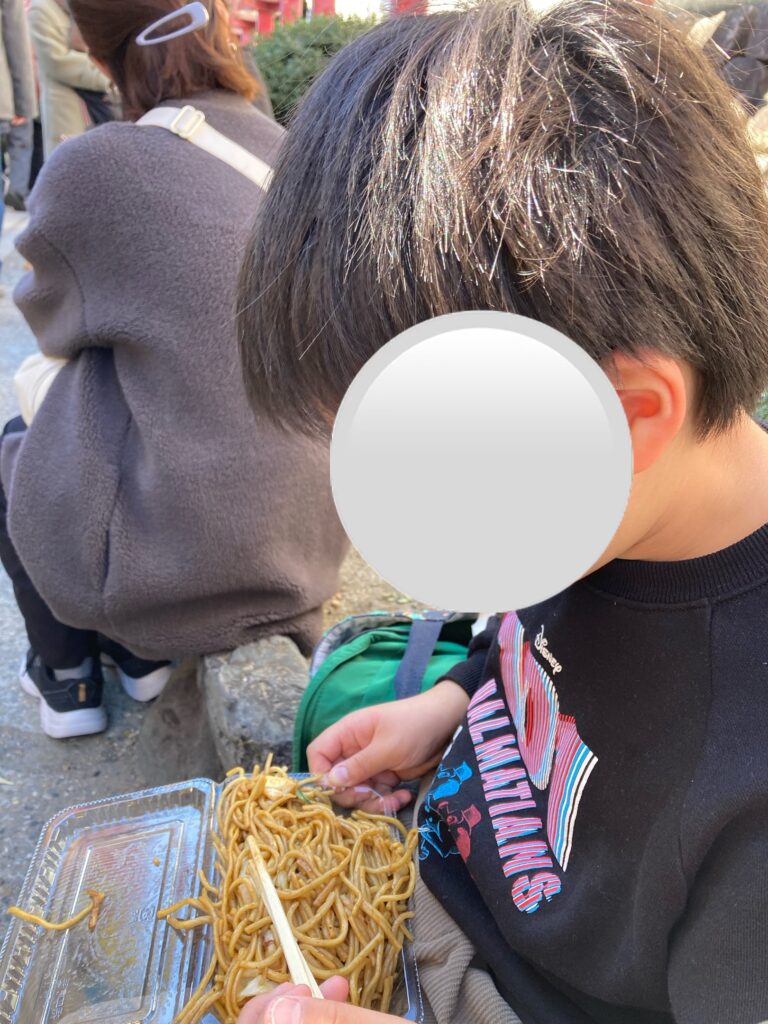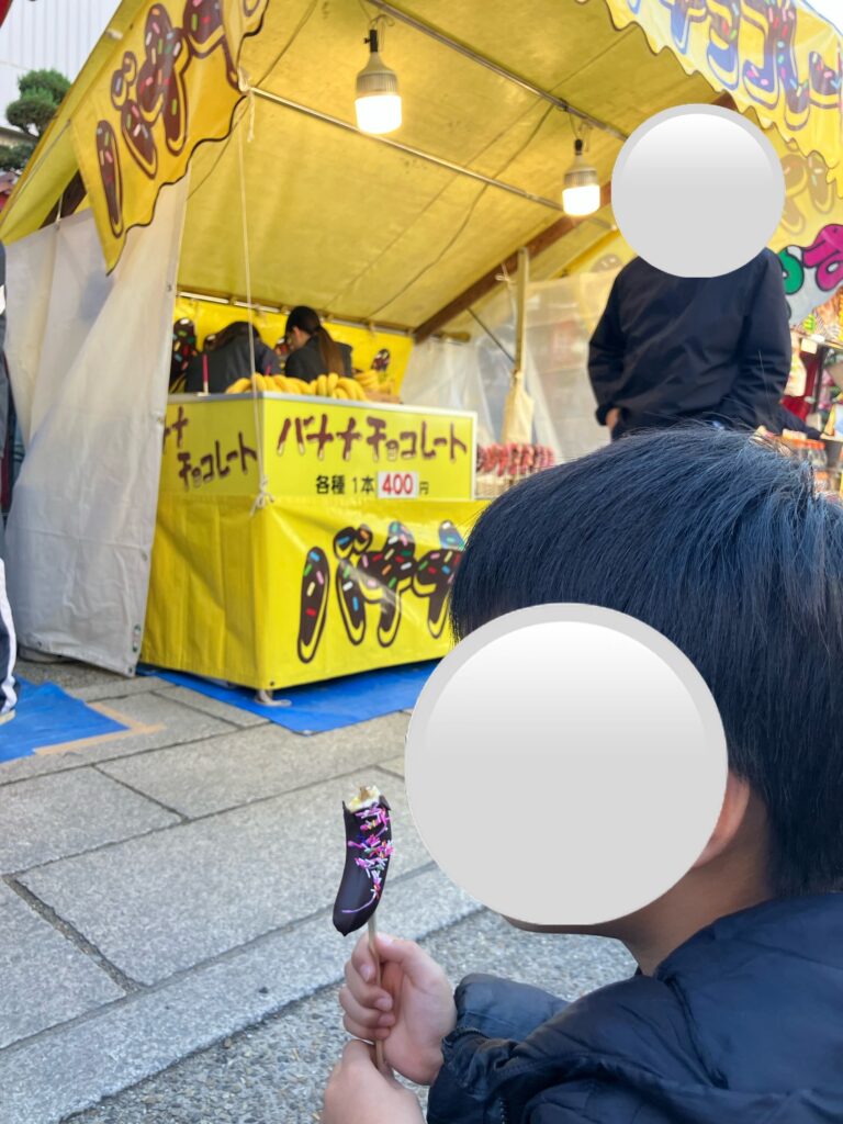 神社内にはたくさんの出店があり、子どもたちはみんな興味津々👀